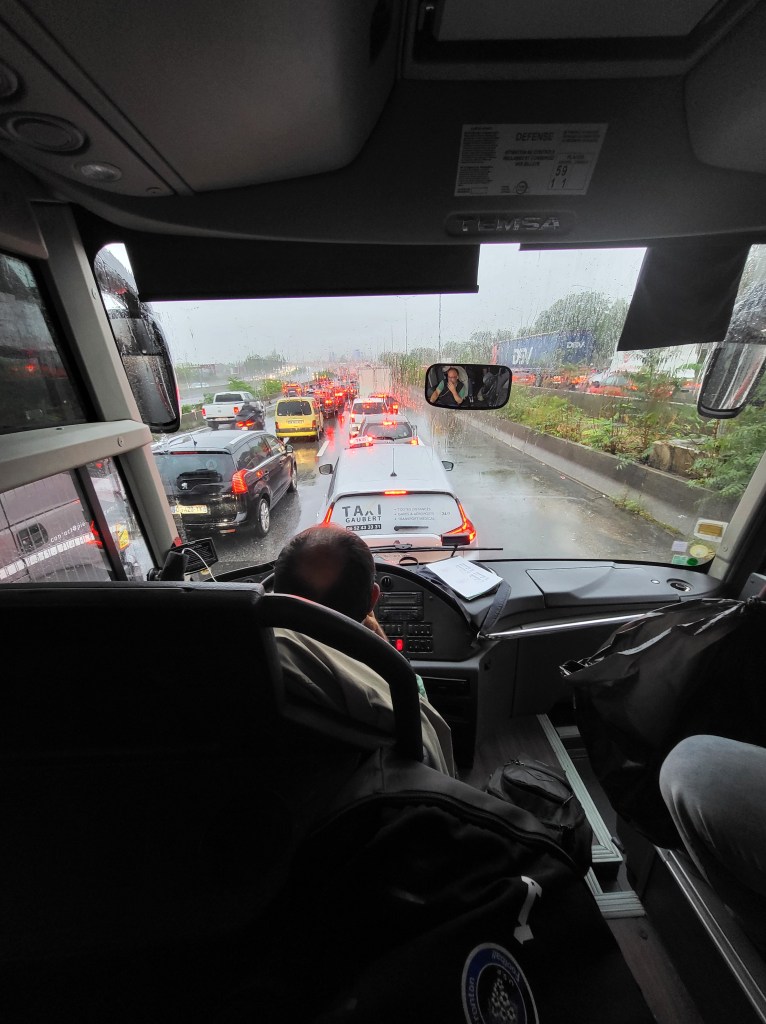 Revenons à ce trajet, qui paraît interminable et particulièrement en passant par Paris ! On est resté bloqué plus de 3h dans la capitale !! Des bouchons de partout, des moments où le bus n’a d’autre choix que d’être complètement bloqué…