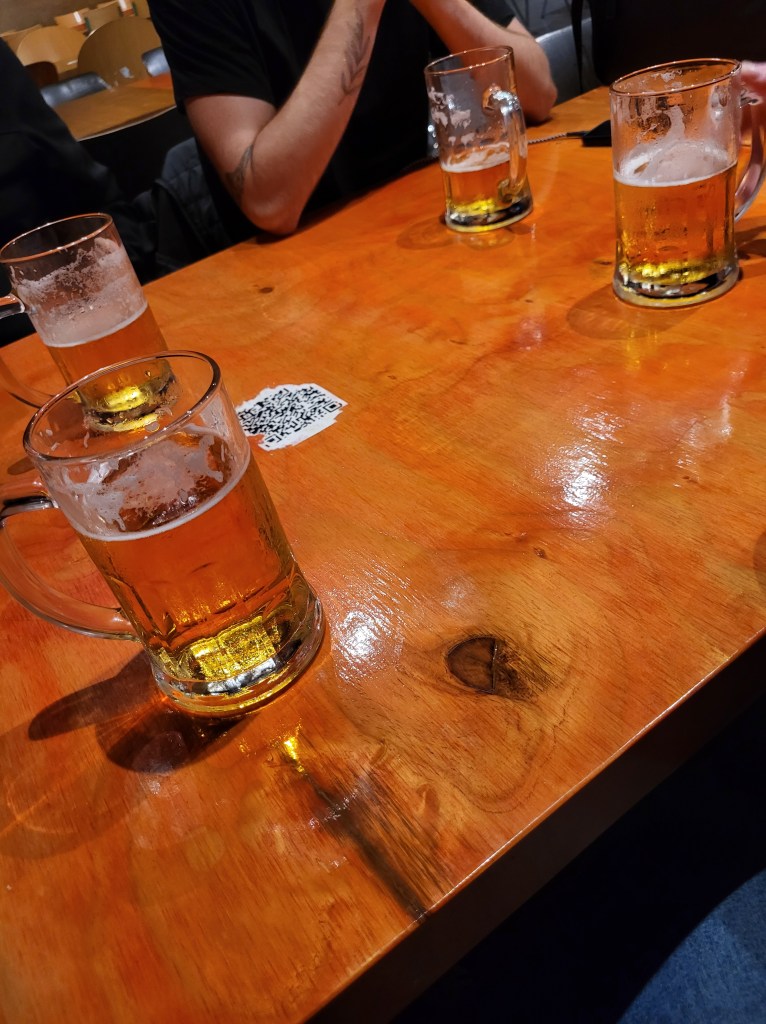 C’était franchement bon mais très bourratif on est allés ensuite boire une pinte au bar d’à côté, clairement pas le même prix qu’en France : trois euros la pinte. Avec un happy hour de midi à minuit, j’en ris encore !